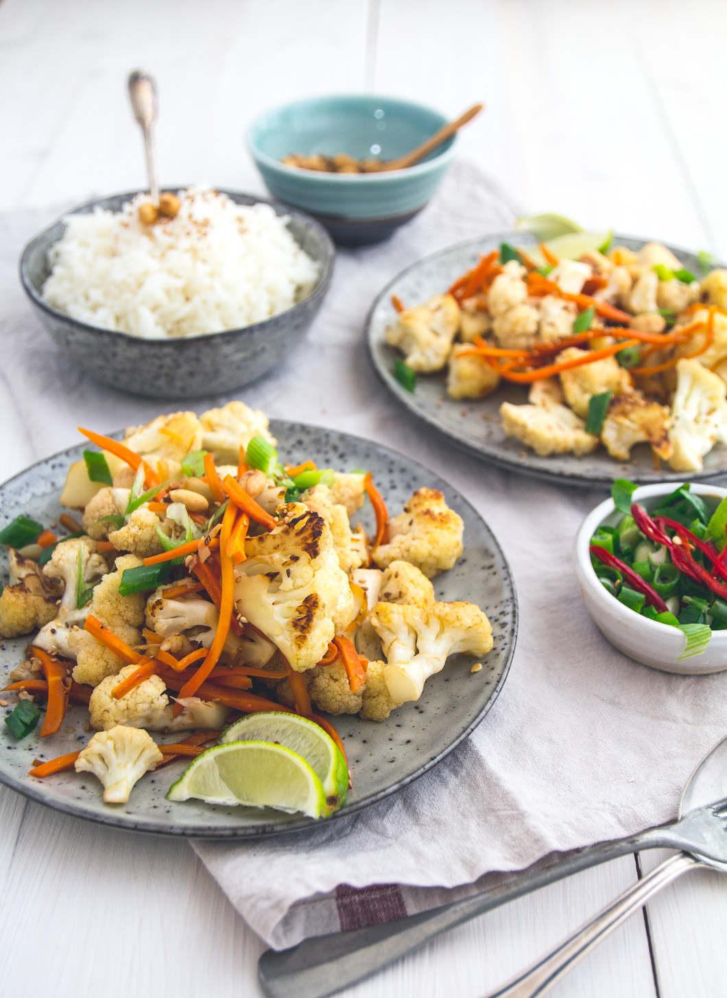 Als wir vor etwas mehr als zwei Jahren dieses Rezept zum ersten mal gepostet haben, waren wir der irrsinnigen Meinung, es “Salat” nennen zu müssen. Dabei geht der knackige, süß-saure Blumenkohl zusammen mit einer Schüssel Reis locker als Hauptspeise durch.