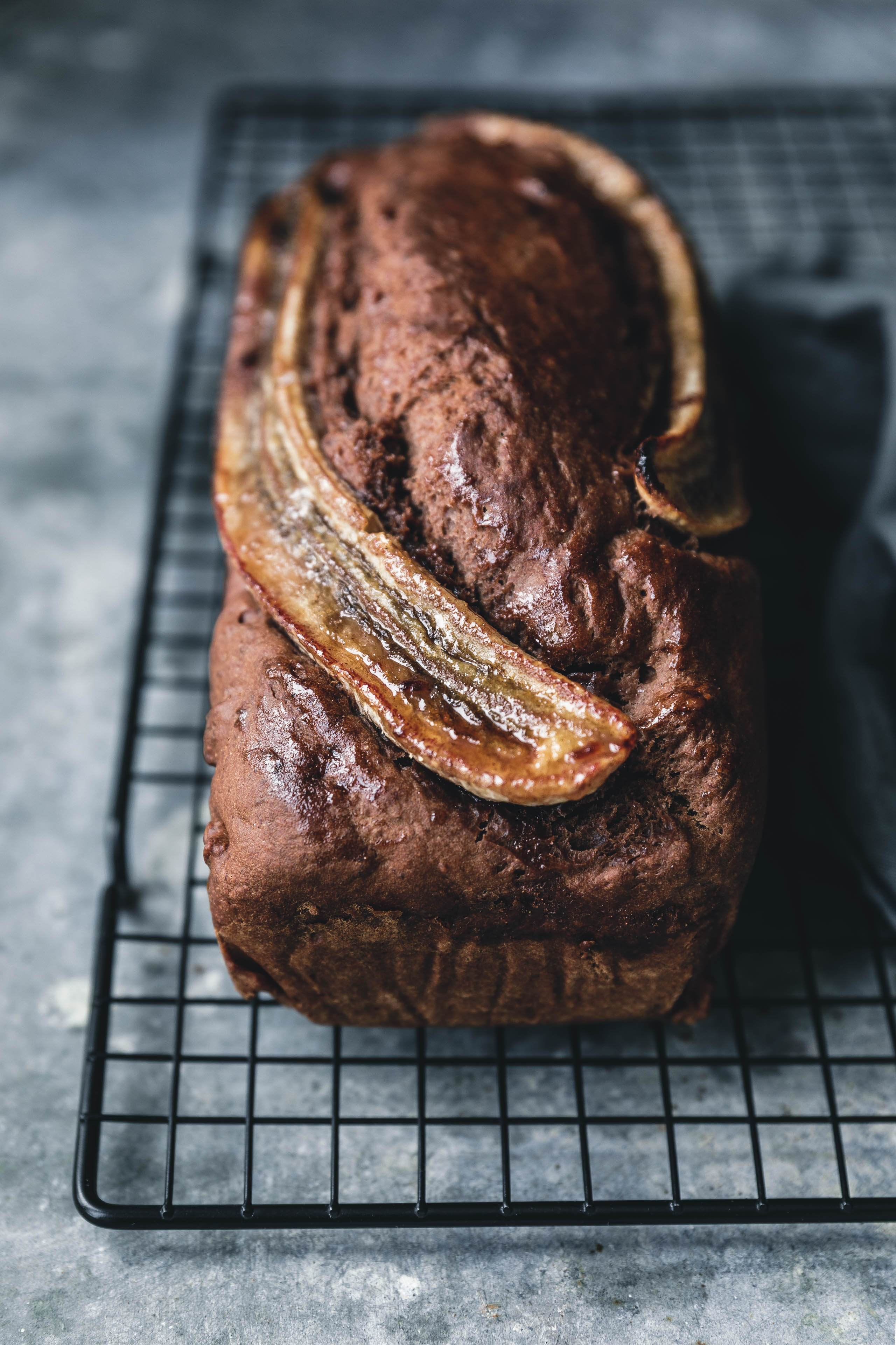 - Die Bananen direkt nach dem Backen mit Ahornsirup-Zimtmischung einpinseln und das Brot anschließend mindestens 20-30 Minuten abkühlen lassen.