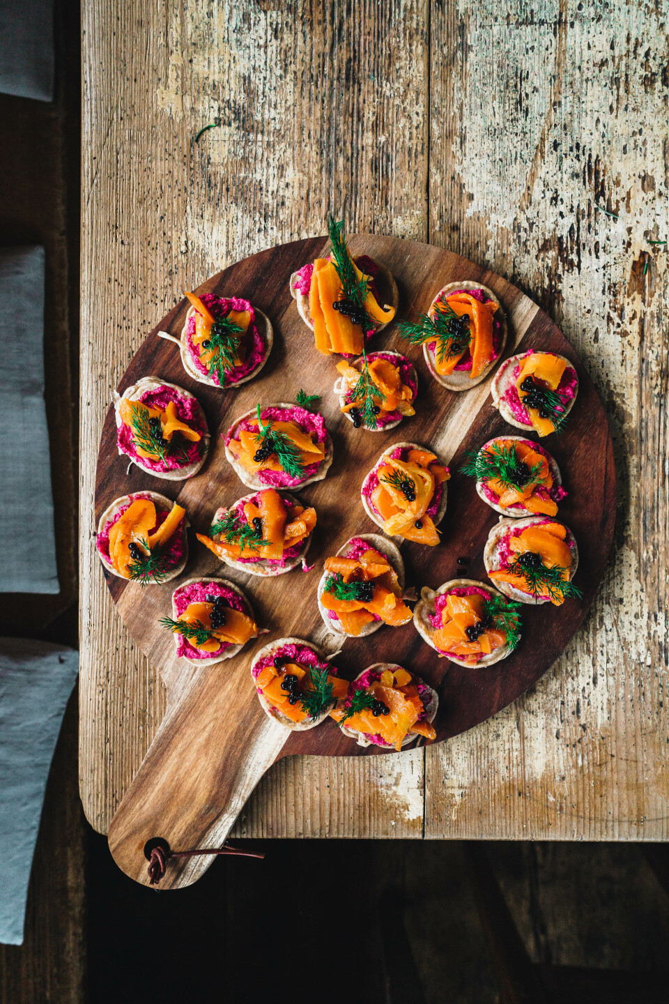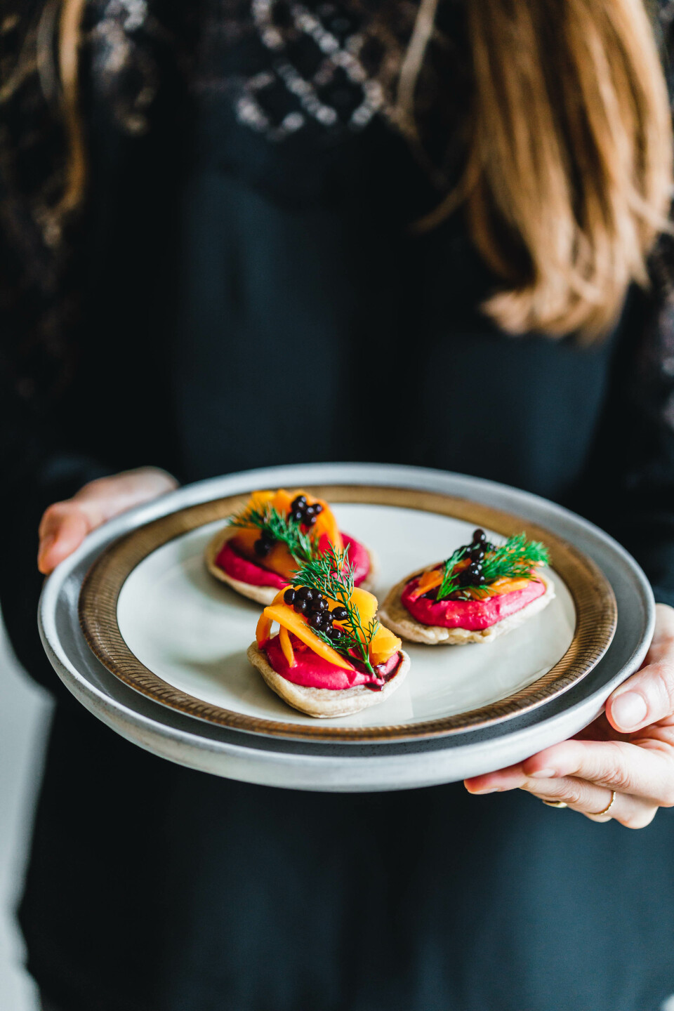 Buchweizen-Blinis mit Rote-Bete-Meerrettich-Creme & Gin-Karottenlachs
