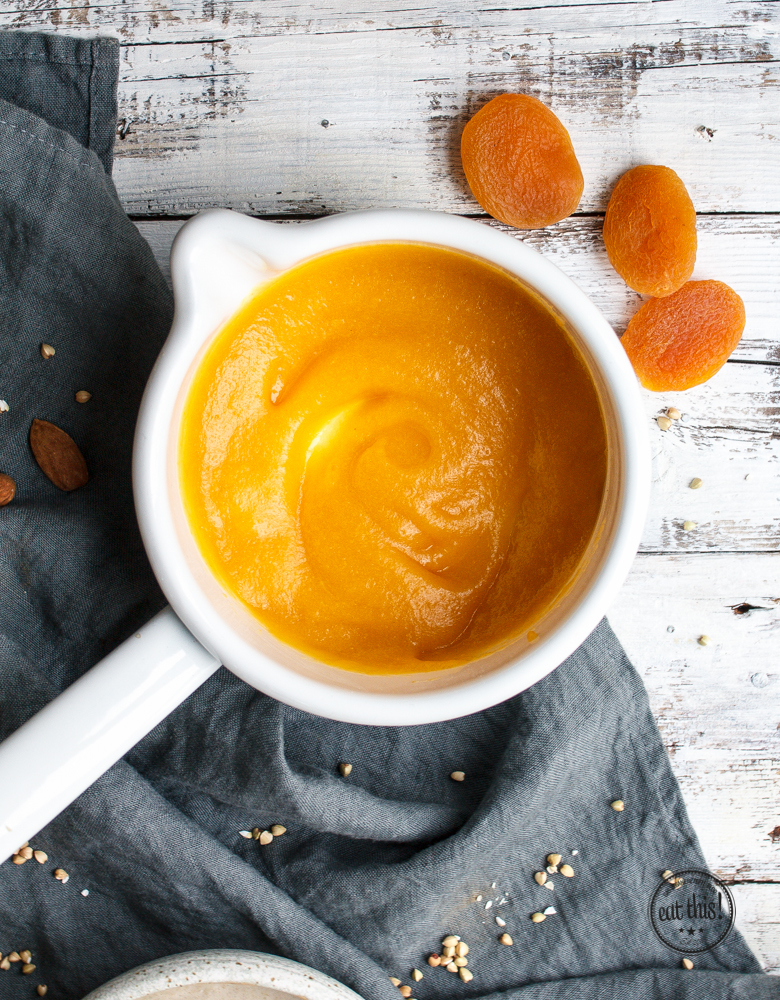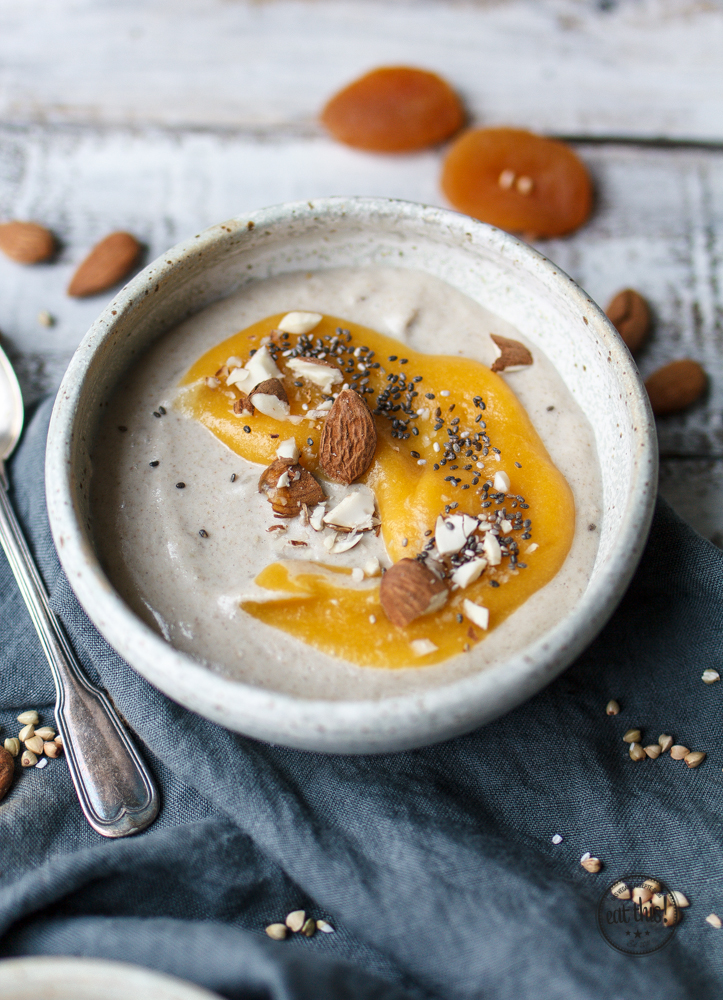 Mein „Alltime-Favourite“ ist natürlich der Klassiker mit Haferflocken oder auch mit Quinoa, aber momentan bin ganz verliebt in dieses seidig-cremige Buchweizen-Porridge mit warmem Aprikosenmus.