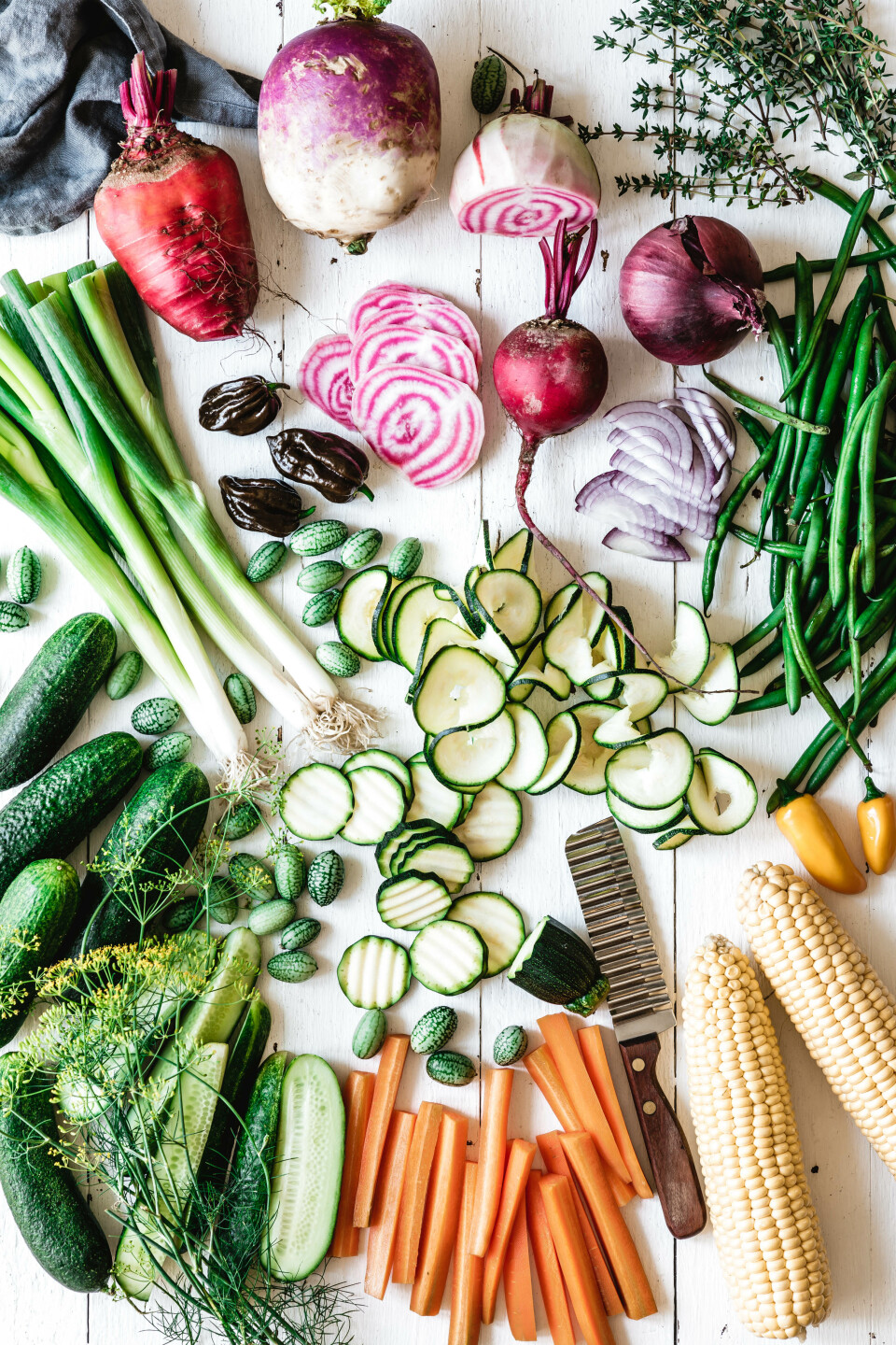 - Um das Gemüse schön in Form zu bringen, verwenden wir auch gerne mal den Spiralschneider oder unser heißgeliebtes Crinkle Cutter Messer – das bringt optisch Abwechslung ins Glas!