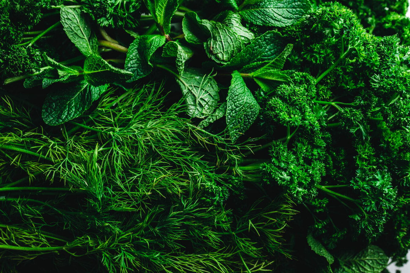 Ein Berg frische Petersilie, Dill und Minze sehen zusammen nicht nur unglaublich schön aus, sondern schmecken auch echt edel. Dazu saftig-süße Sommergurke und als Kontrast schnell gepickelte säuerlich-scharfe rote Zwiebeln.