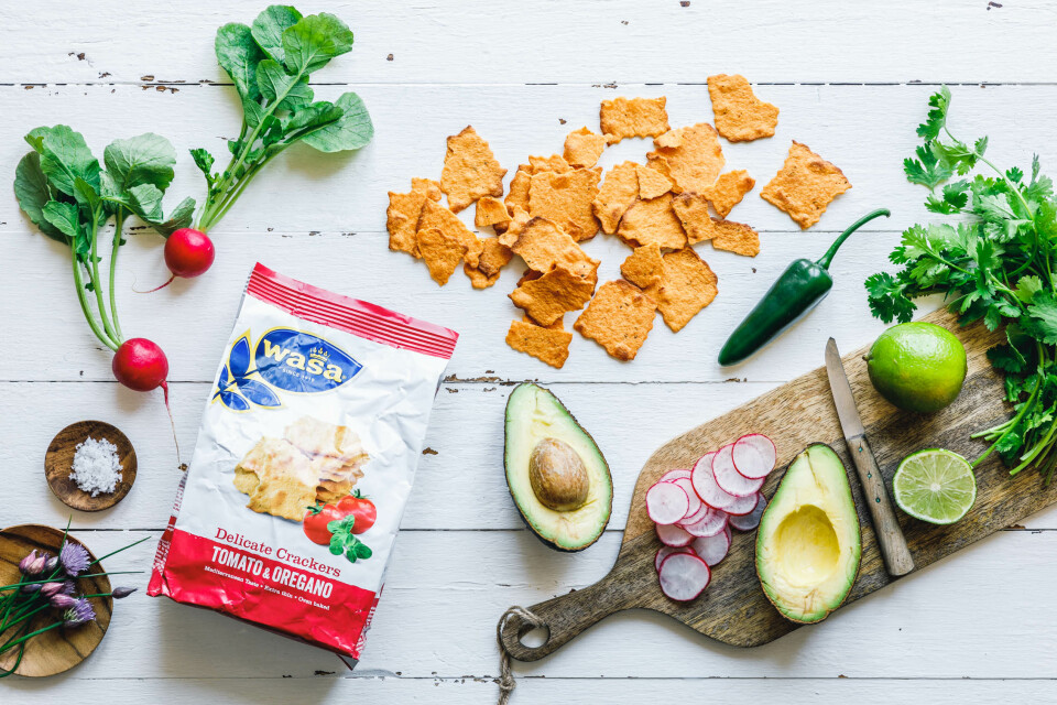 - 160 g Cracker z. B. WASA Delicate Crackers Tomate & Oregano
