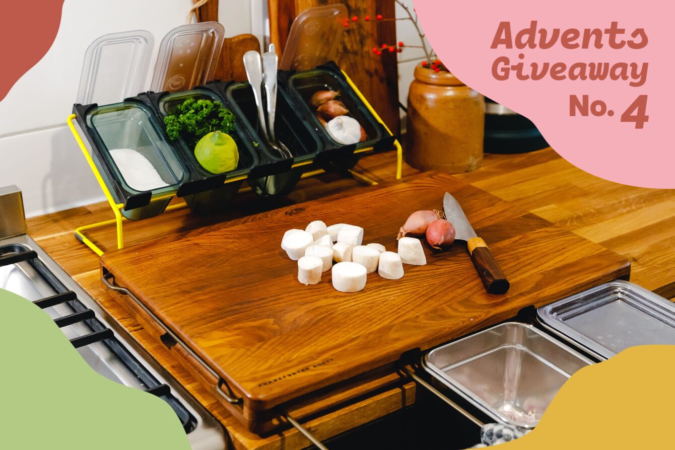 Im letzten Adventsgewinnspiel für 2022 wird es quasi „bretthart“. Zusammen mit dem „Frankfurter Brett“ verlosen wir einen Küchenarbeitsplatz der Extraklasse – unser Eat this! x Frankfurter Brett Freunde-Set.