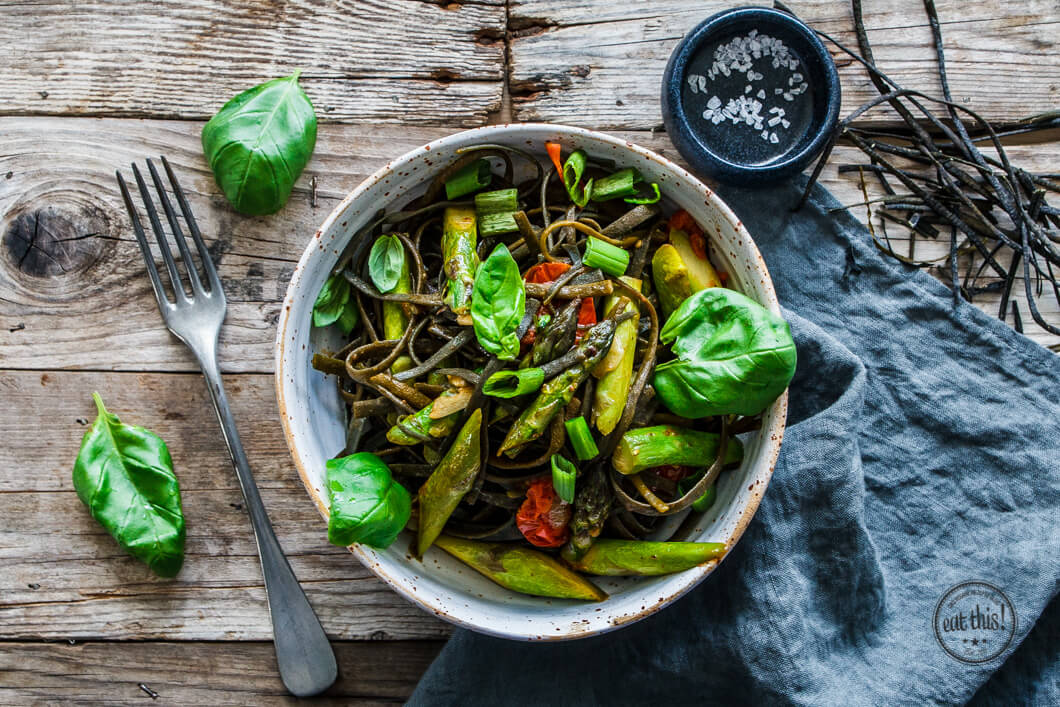 Die Algen-Pasta hat einen richtig tollen Biss, schmeckt super-würzig, ist glutenfrei und dabei auch noch gesund. Hooray!