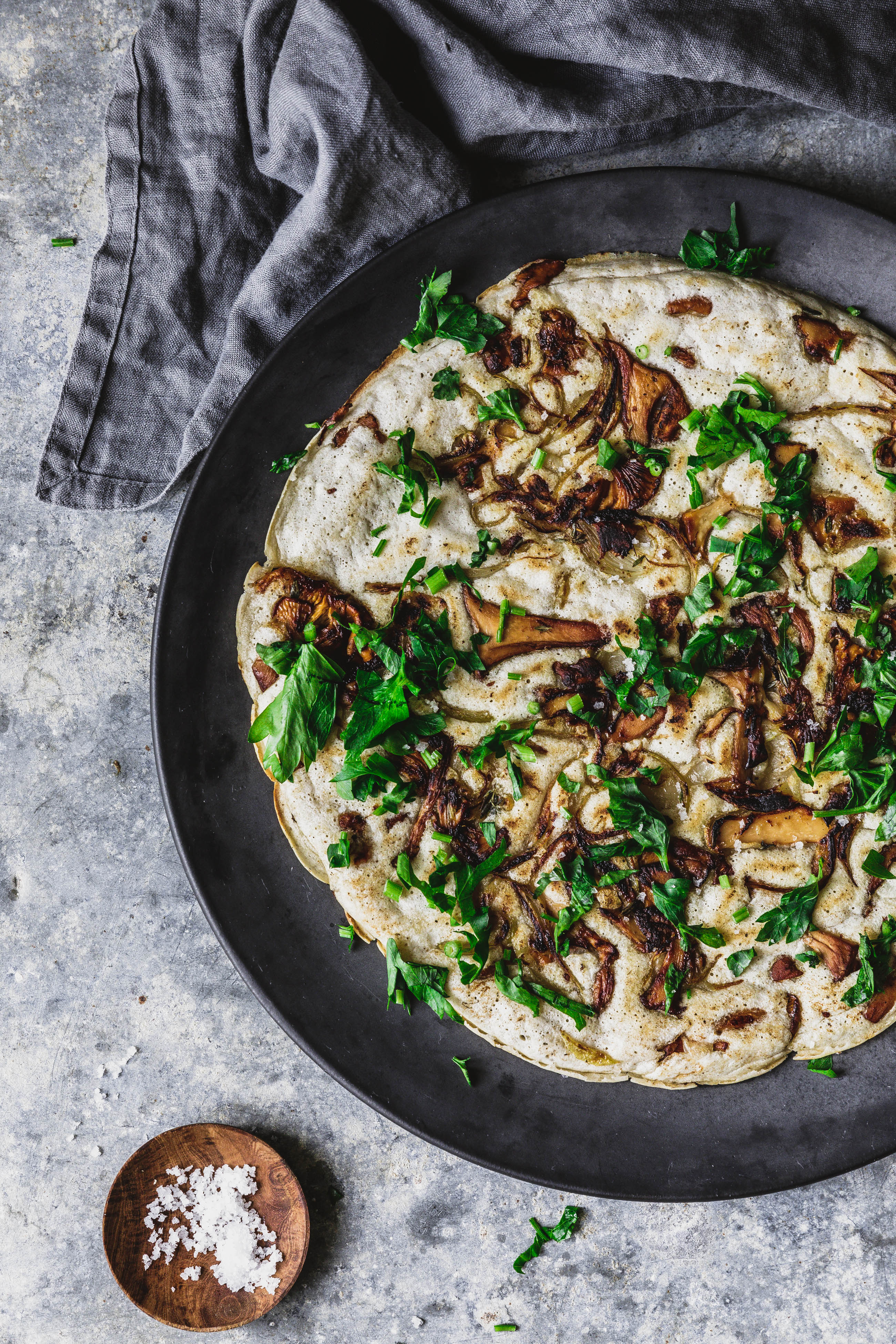 Du auch? Kein Problem, ich hätte da eine unglaublich gute Idee für leckere, gesunde und vor allem einfache Sauerteigpancakes. Mit Frühlingszwiebeln, Pilzen und frischer Petersilie. Zu behaupten, sie wären ratzfatz fertig wäre eigentlich schon untertrieben. Du brauchst maximal fünf Minuten für die Vorbereitung und die Pfanne macht den Rest.