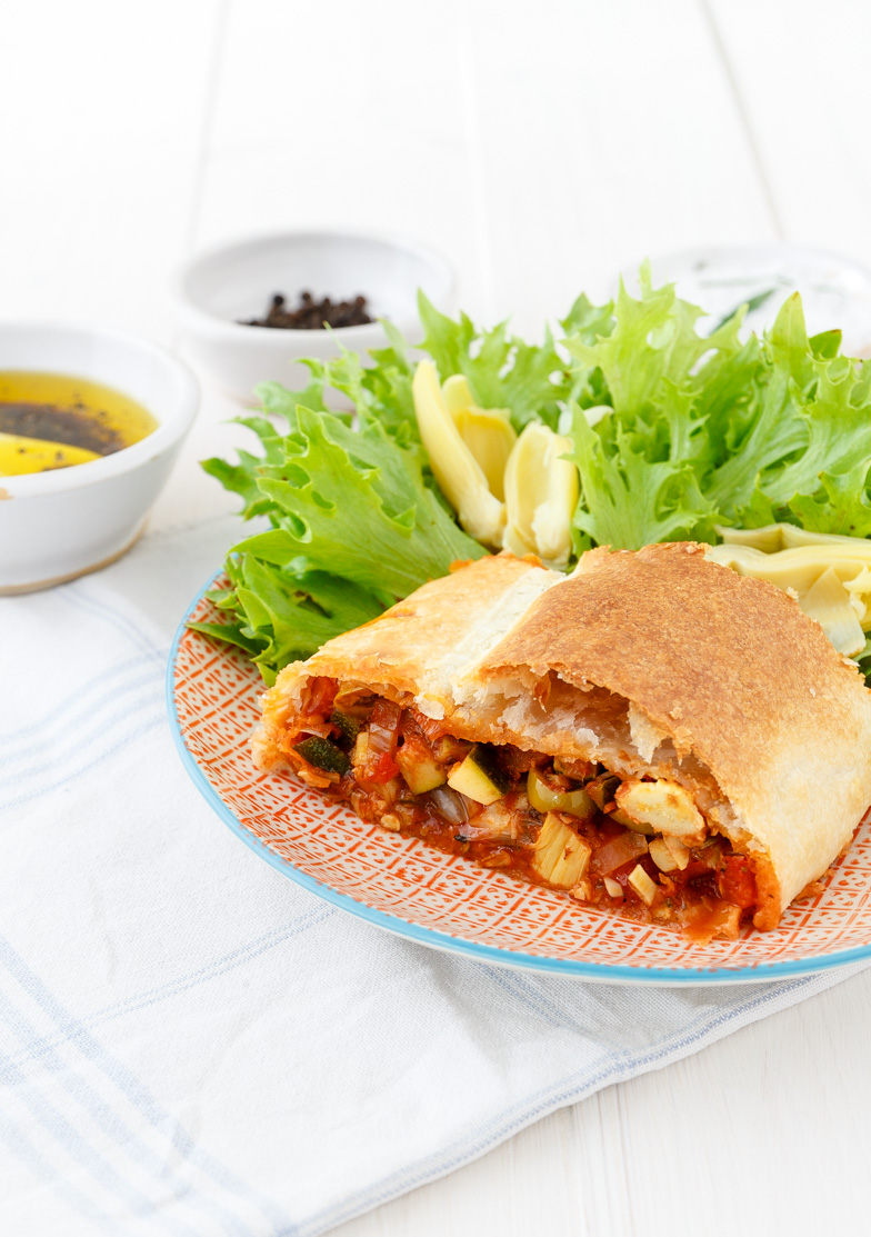 Auch bei unserem Rezeptvorschlag für einen mediterranen Gemüsestrudel darf natürlich nach Belieben etwas hinzugefügt oder weggelassen werden! Achtet aber darauf, dass der fertige Blätterteig auch wirklich vegan ist – Zutatencheck! Den macht man ja aber eh schon automatisch. Viel Spaß!