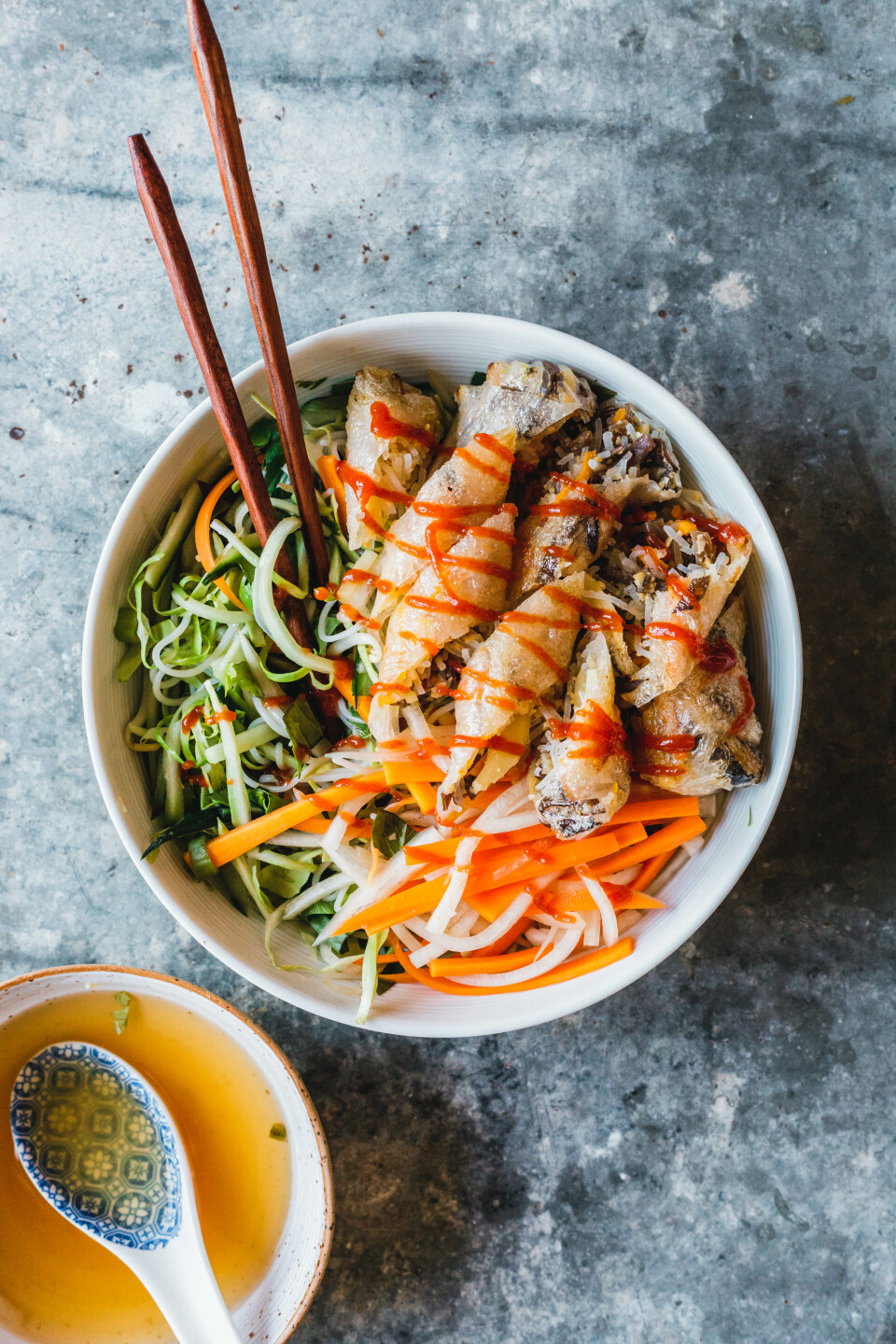 Das sind die coolen vietnamesischen Geschwister der altbekannten Standard-Mini-Frühlingsrollen, aber aus Reispapier und mit einer oberleckeren Füllung aus dünnen Glasnudeln, einer riesigen Ladung knackiger Morcheln und Gemüse.