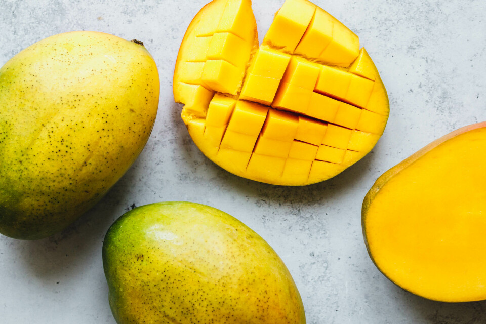 Den richtigen Reifegrad von Mangos erkennst du übrigens daran, dass sie angenehm duften und auf Druck leicht nachgeben. Wenn sie „vollreif“ sind, bilden sie ein bis vier Millimeter große schwarze Punkte auf der Schale. Länger solltest du sie mit ihren Sommersprossen dann auch nicht liegen lassen, da sie nun ziemlich druckempfindlich sind und genau jetzt am besten und aromatischsten schmecken. Hast du aber ausgerechnet dann keine Zeit zur Verarbeitung (wie das immer so ist), kannst du die reife Mango aber auch, genau wie Bananen, gut in Stücken einfrieren und bei Bedarf ganz wunderbare, schnelle Eiscreme daraus mixen.