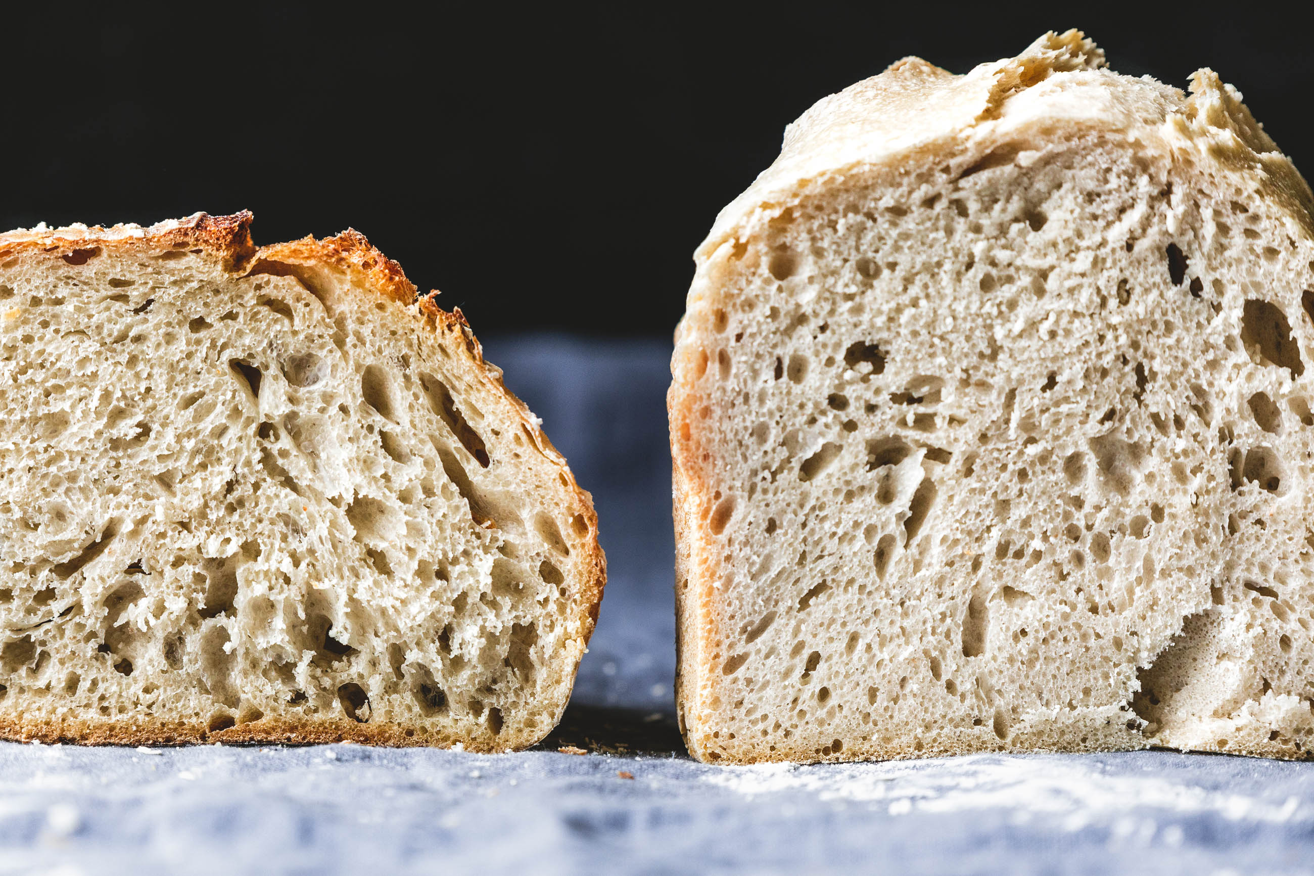Natürlich kann man den Sauerteig am Morgen vorbereiten und am Abend dann damit beginnen, den Hauptteig zuzubereiten. Es ist auch eigentlich kein Problem, während der drei Stunden, in denen er – abgesehen von ein paar Streicheleinheiten – ruhen darf, mit einem Buch auf der Couch zu lümmeln. Und die kurzen Pausen für’s Dehnen und Falten des Teiges währenddessen gehen einem mit etwas Übung in wenigen Minuten von der Hand. Selbstverständlich ist es auch kein Problem, eine halbe Stunde früher aufzustehen, den Ofen vorzuheizen und den geformten Laib zu backen, während du dich für den Tag fertig machst. Hey, dafür wartet Abends das frischeste, leckerste Brot auf dich, wenn du die Tür aufschließt. Es sei denn, du hast Mitbewohner – dann ist es wahrscheinlich schon mindestens zur Hälfte verspeist.