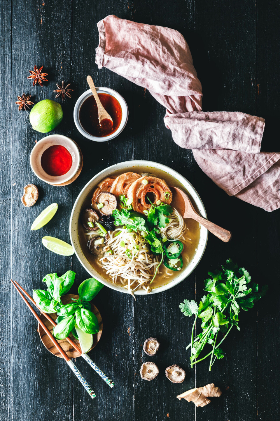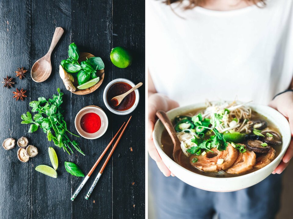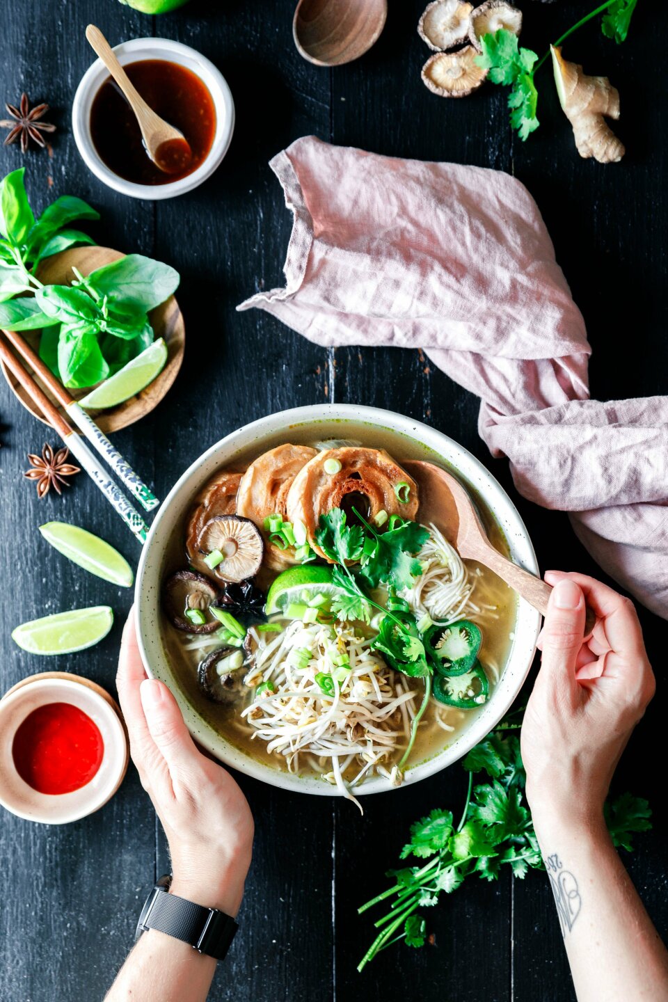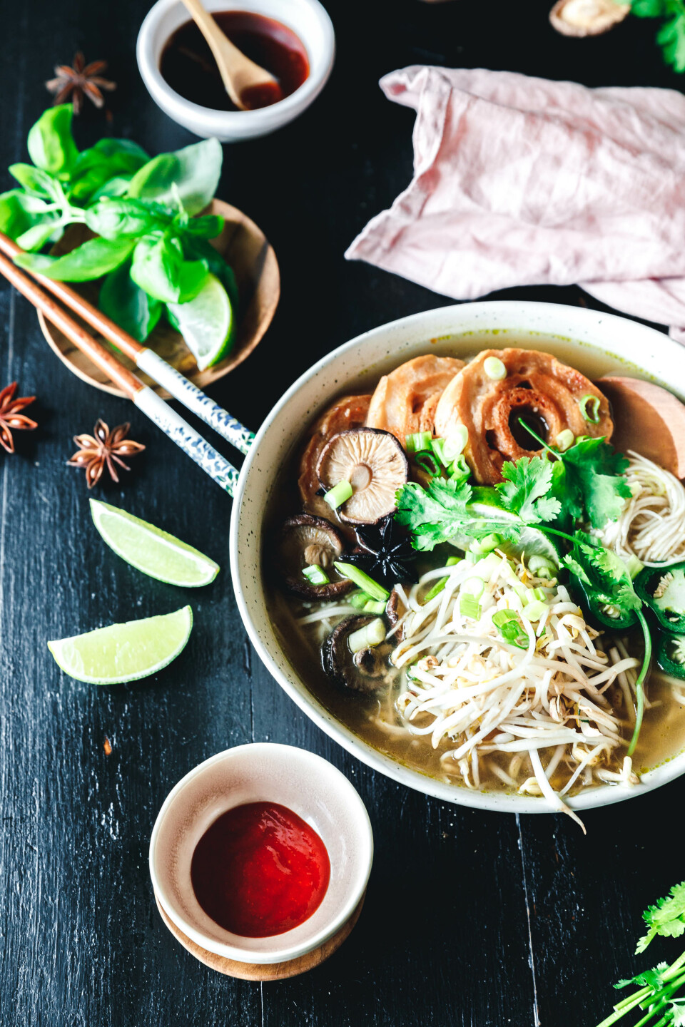 Auch wenn Pho traditionell meist als Frühstück gegessen wird, kommt die unglaublich duftende Suppe mit Reisnudeln und Gemüse bei uns wirklich häufig mittags auf den Tisch. Einer von uns beiden huscht mittags in die Küche und schon 30 Minuten später steht das perfekte Mittagessen auf dem Tisch.