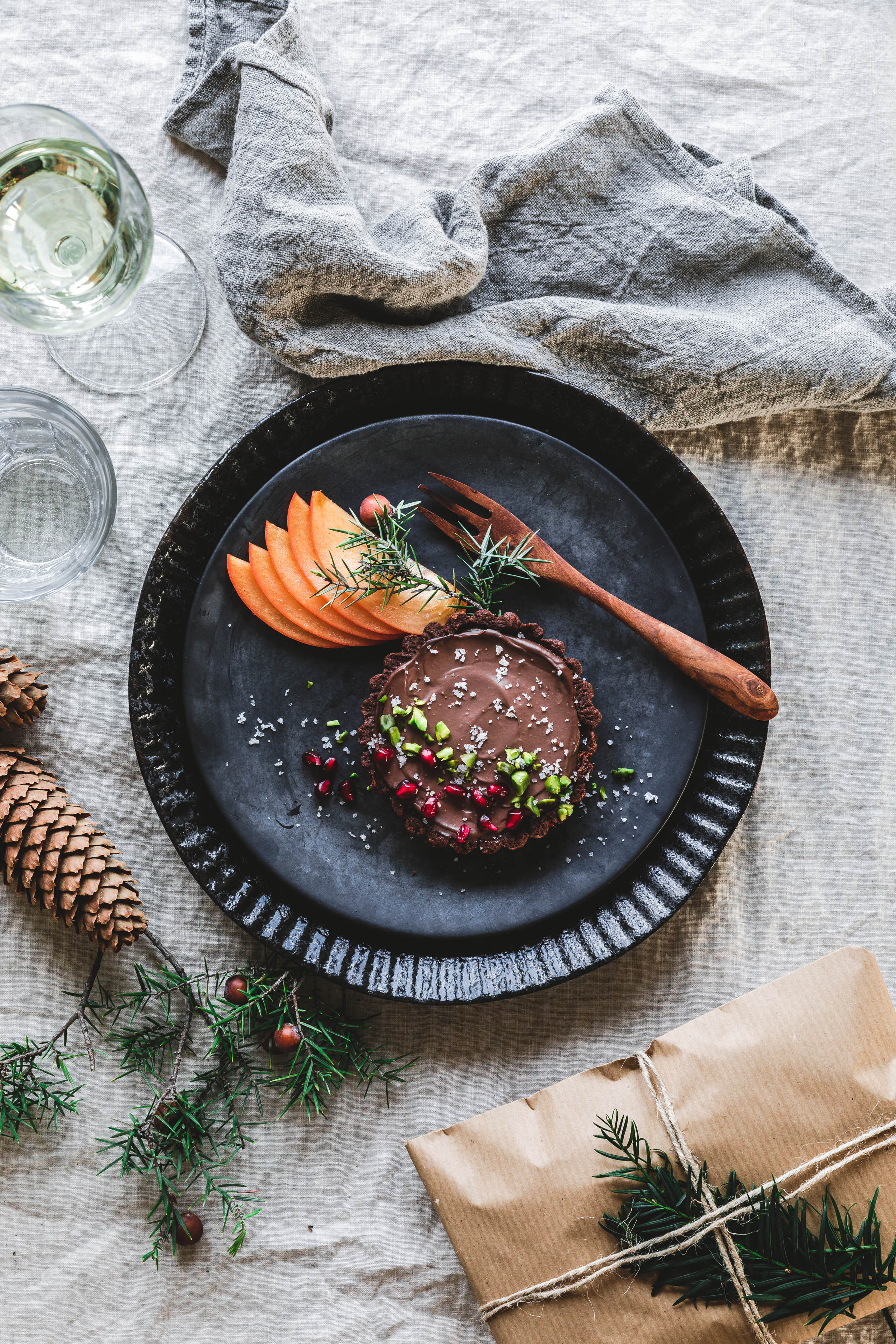Chocolat, mon amour! Hier kommt nun das Dessert zu unserem diesjährigen veganen Festtagsschmaus, s’il te plaît!