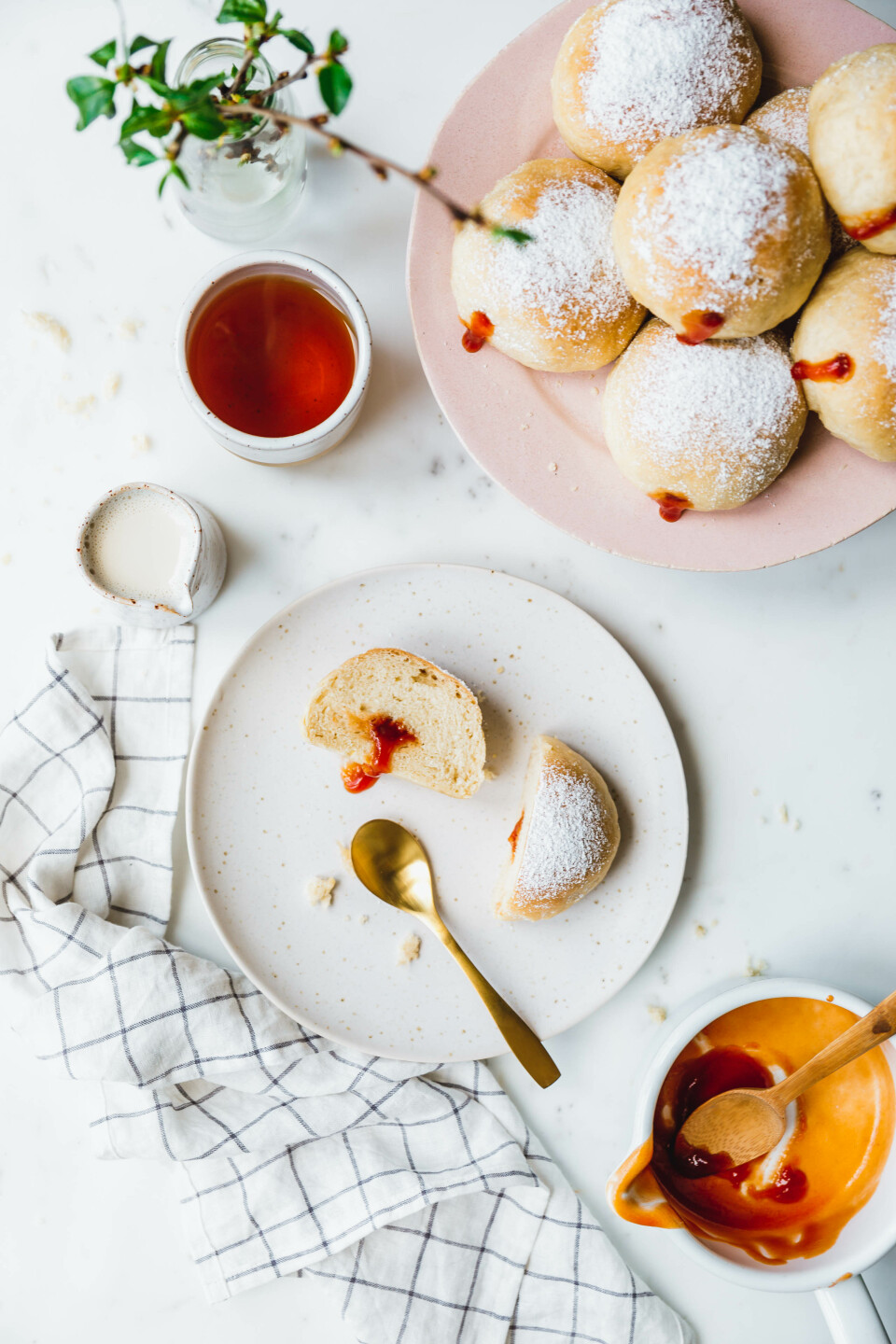Ich will ganz ehrlich sein: ich hätte nicht gedacht, dass vegane Berliner aus dem Ofen sowas von unverschämt gut werden. Aber sie haben geschmeckt wie früher. Nein. Noch besser! Jörg fand meine plötzlich übermäßig gute Laune schon fast nicht mehr zum Aushalten. 😂