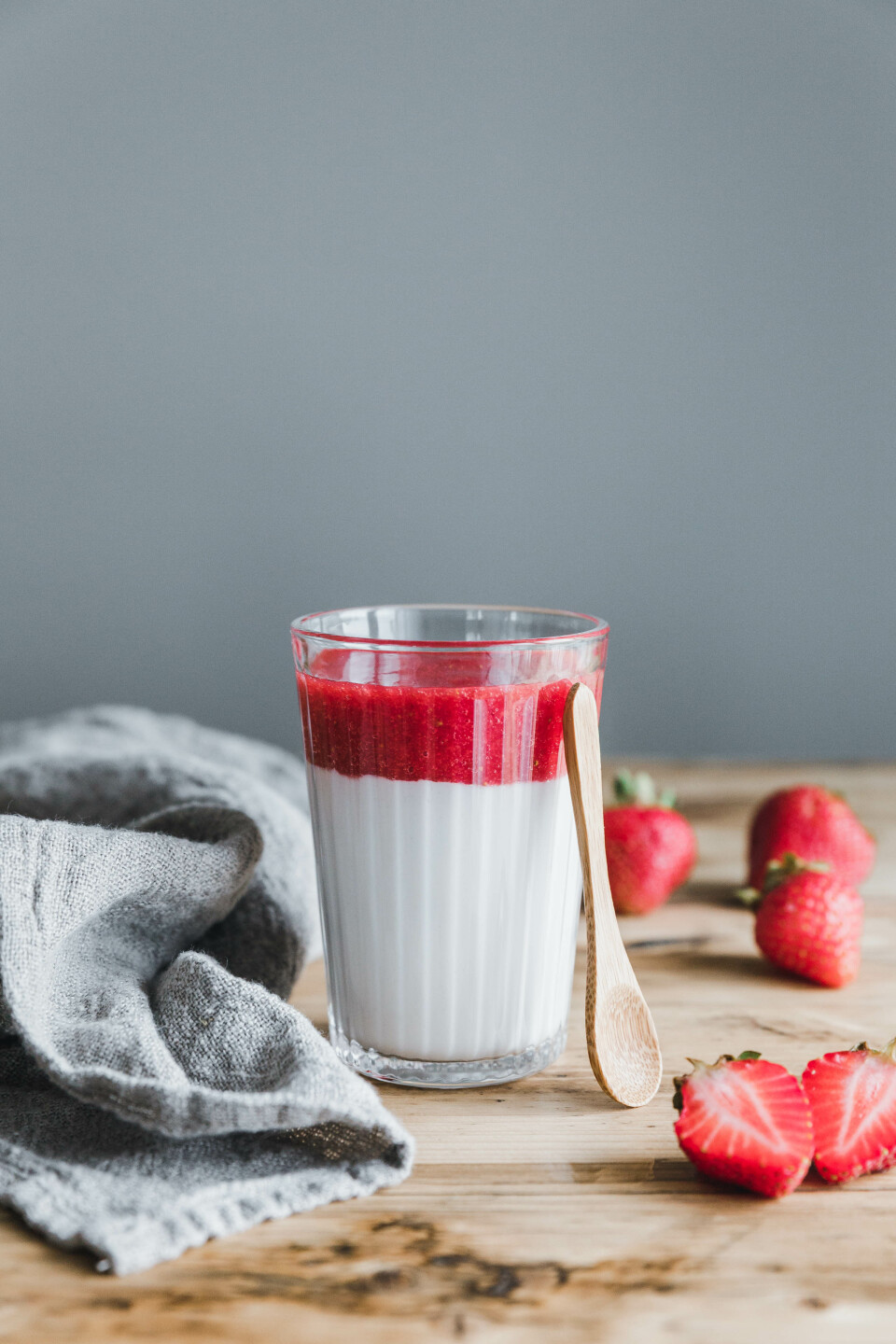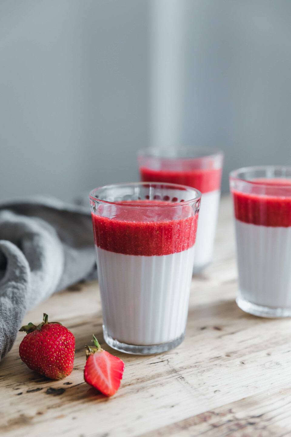 Vegane Mandel-Pannacotta mit Erdbeersauce