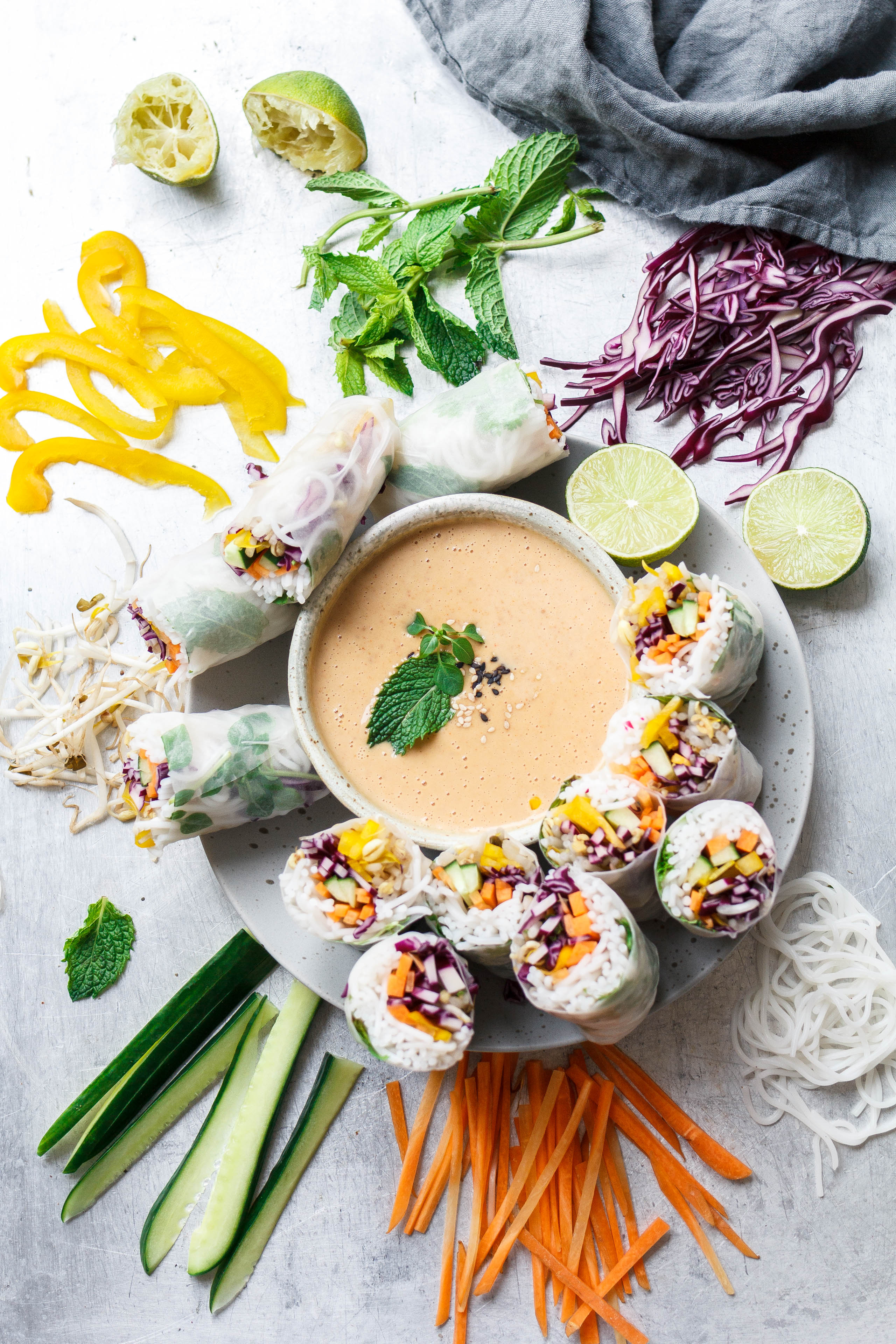 Vegane Sommerrollen mit Erdnuss-Chili-Dip