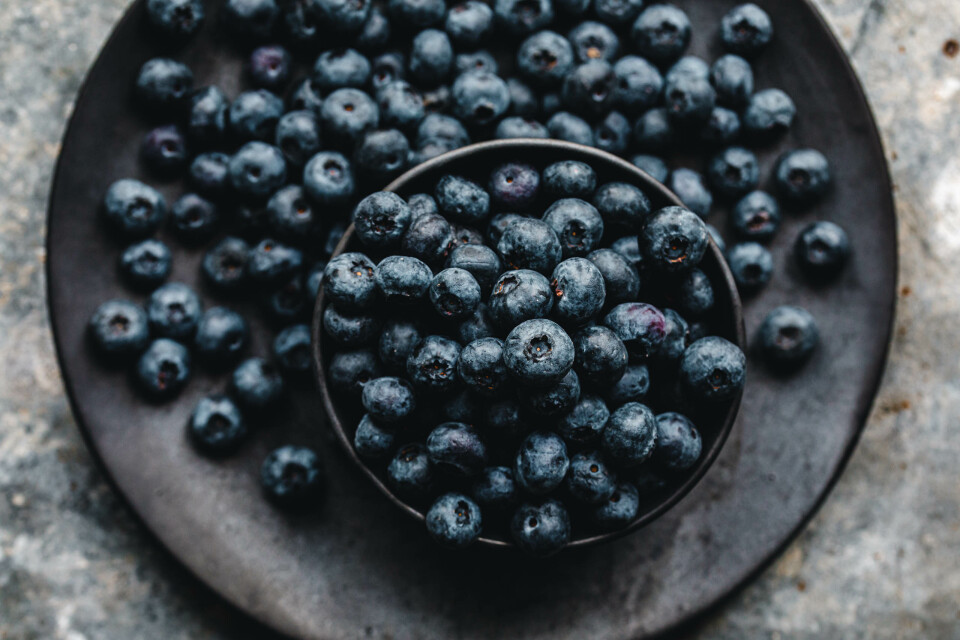 Die dunklen Heidelbeeren köcheln wir ganz simpel nur kurz im eigenen Saft mit etwas aromatischem Bio-Ahornsirup und dicken die Beerenfüllung anschließend mit etwas Speisestärke an. Über Nacht wird die Masse im Kühlschrank dann schön schnittfest. Guck doch mal, wie das leuchtet!