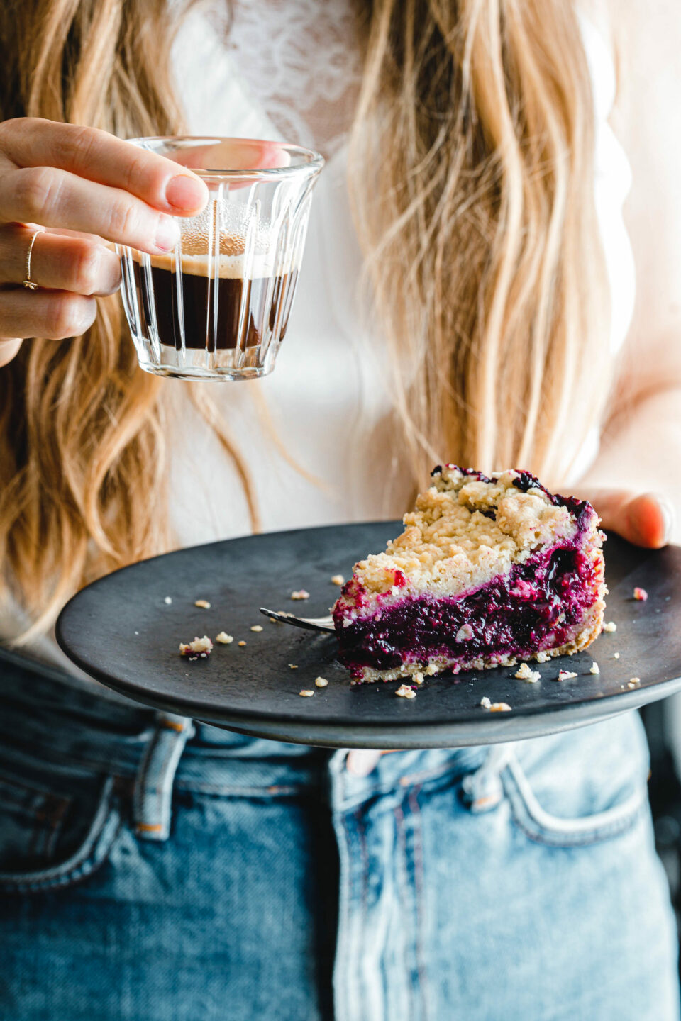 Wen machst du, außer dich selbst natürlich, am Wochenende mit einem Stückchen veganen Heidelbeer Streuselkuchen glücklich?