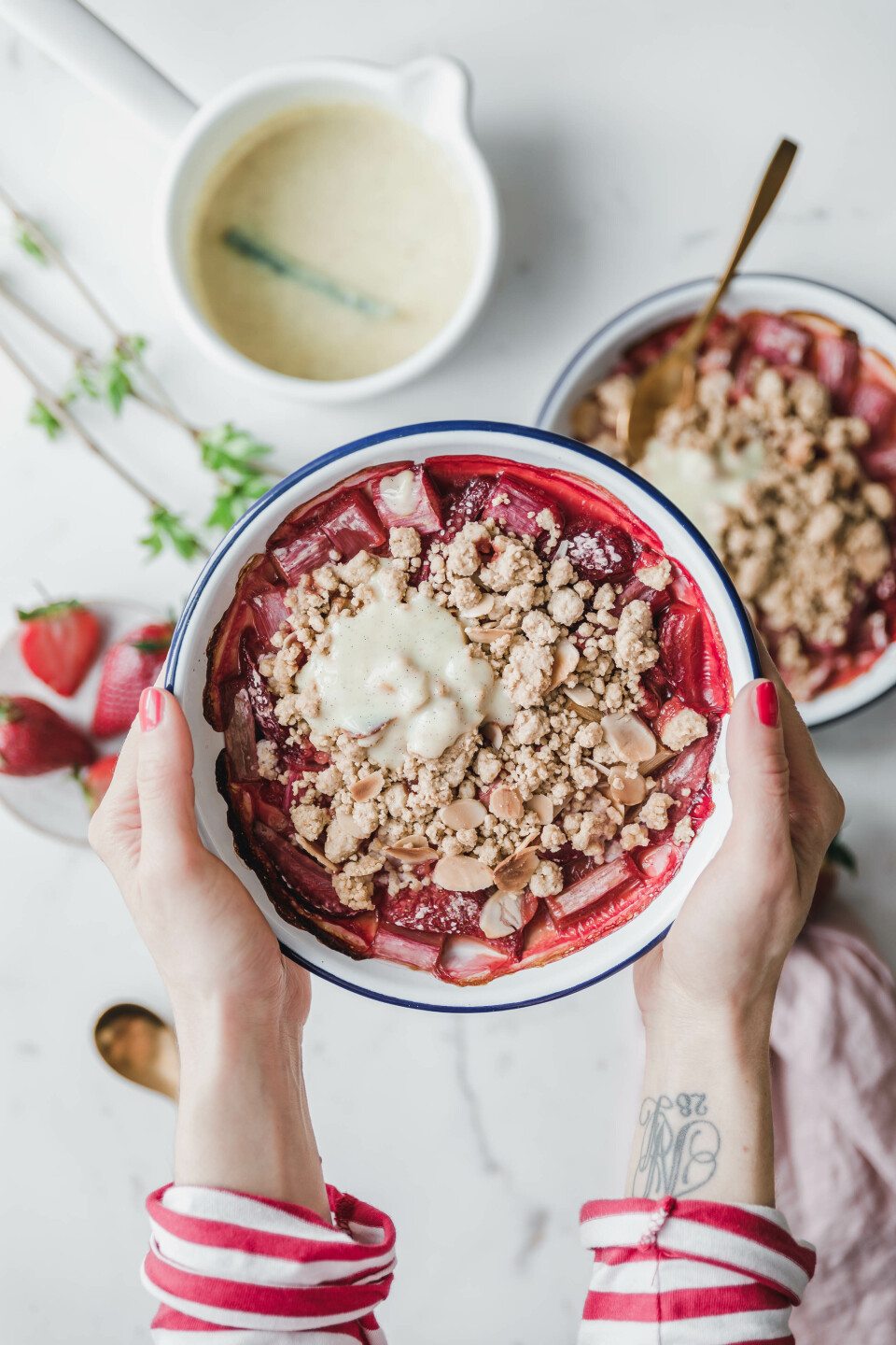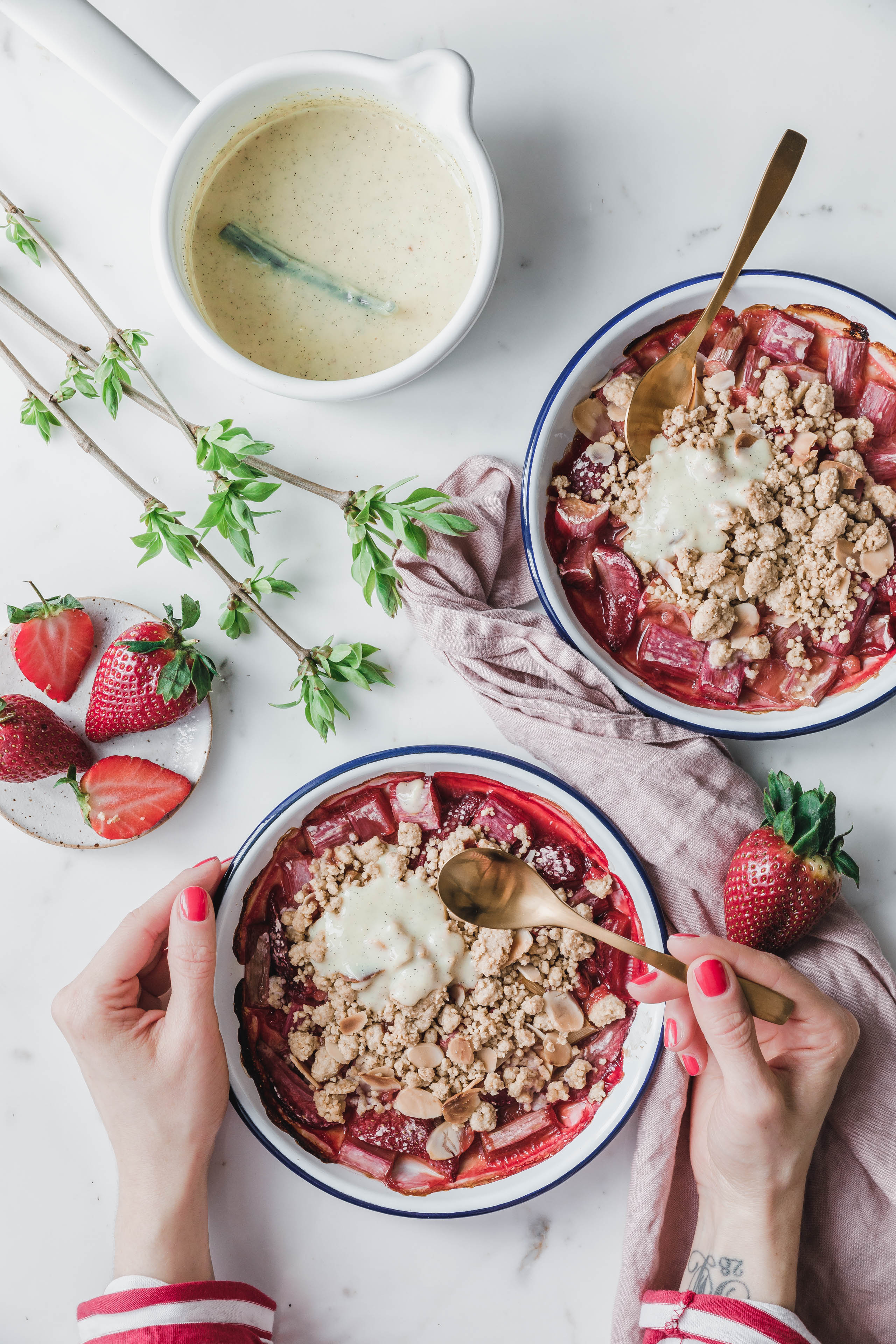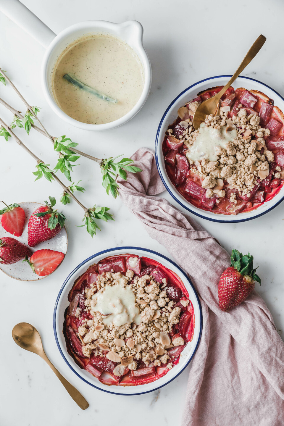 Rhabarber-Erdbeer-Crumble mit Vanillesauce