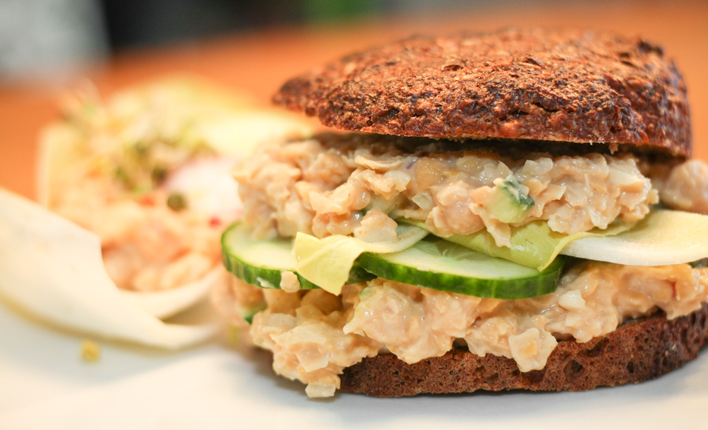 Viel zu lange gab es bei uns schon keine Sandwiches mehr und dabei lieb ich sie doch so sehr! Sie sind schnell gemacht, praktisch auch zum Mitnehmen und schmecken einfach bombastisch. Heute hatte ich Lust auf  ein “Chicken-Style” Sandwich und wie der Name im englischen für Kichererbsen, nämlich “Chickpeas”, ja schon verrät, erinnern die kleinen Erbsen geschmacklich ein wenig an Hähnchenfleisch – natürlich nur viel besser, versteht sich ja von selbst ;-). Was ich jedoch noch nicht wusste und mich schon länger immer mal gefragt habe, warum es im deutschen eigentlich “Kichererbse” heißt. Solltet ihr es noch nicht wissen, ergötze ich euch hiermit mit meinem neu erlangten Wikipedia-Wissen, falls ihr es schon wisst, braucht ihr ab hier nicht mehr weiterlesen: “Kicher” ist eine Herleitung von dem lateinischen Wort “cicer”, was “Erbse” bedeutet. Das heißt Kichererbse bedeutet so viel wie “Erbseerbse” – seeeehr einfallsreich! Aber wieder was gelernt, ne?