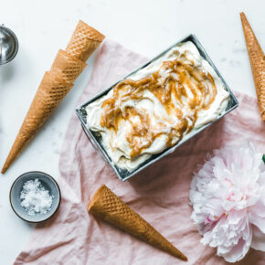 Dattelkaramell unter die fertige Eiscreme rühren.