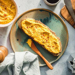 Am besten schmeckt der Aufstrich, wenn er über Nacht im Kühlschrank ziehen konnte. Danach hält er sich, gekühlt und gut verschlossen, etwa 5-7 Tage.