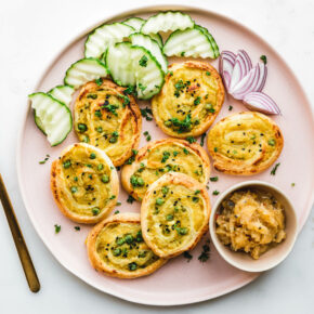 Curry-Blätterteigschnecken mit Kartoffeln & Erbsen